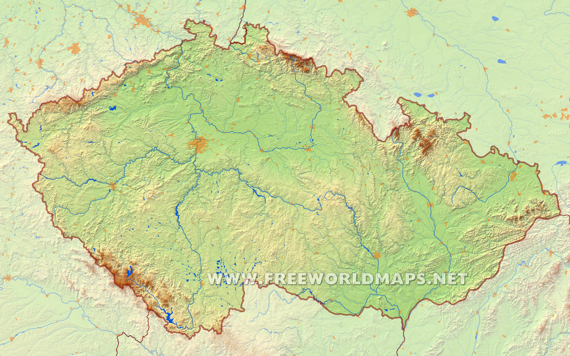 The central regions of the country are characterized by lower hilly areas and lowlands of the rivers originating in the bordering mountain chains. The Bohemian-Moravian Highland is the lengthy hilly area which also marks the border between the two historical regions, Moravia and Bohemia. It is considerably lower elevated then the ring of mountains, its highest is the Javorice at 837 meters.