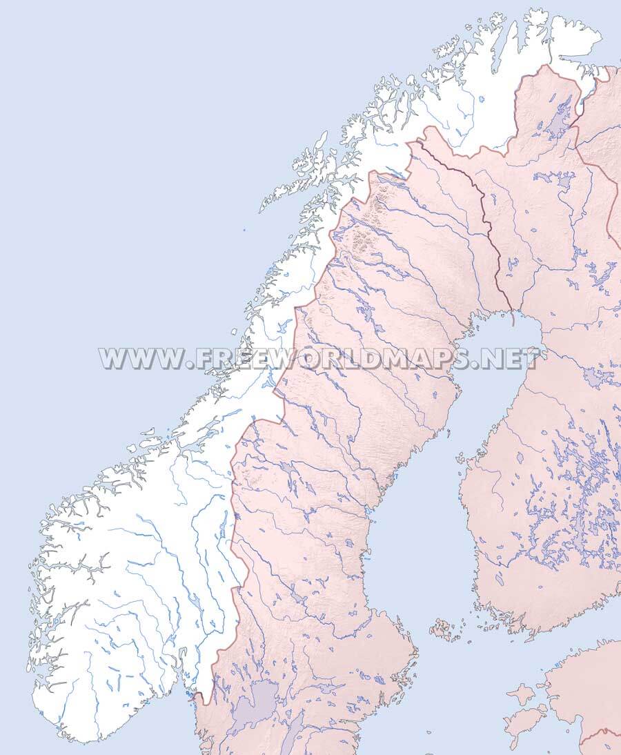 Norway is the northernmost country on the European continent, situated on the coast of the Norwegian Sea and the northwestern slopes of the Scandinavian Mountains chains. It is located on the Scandinavian Peninsula, and is one of the Nordic countries. The longest of its borders are with Sweden, a shorter borderline is drawn between Norway and Sweden on the north, and there is also a tiny common boundary with Russia on the eastern tip of the country. Norway map has one of the longest coastlines in the world, with several smaller and larger fjords tagging the elongated shoreline for its entire length.