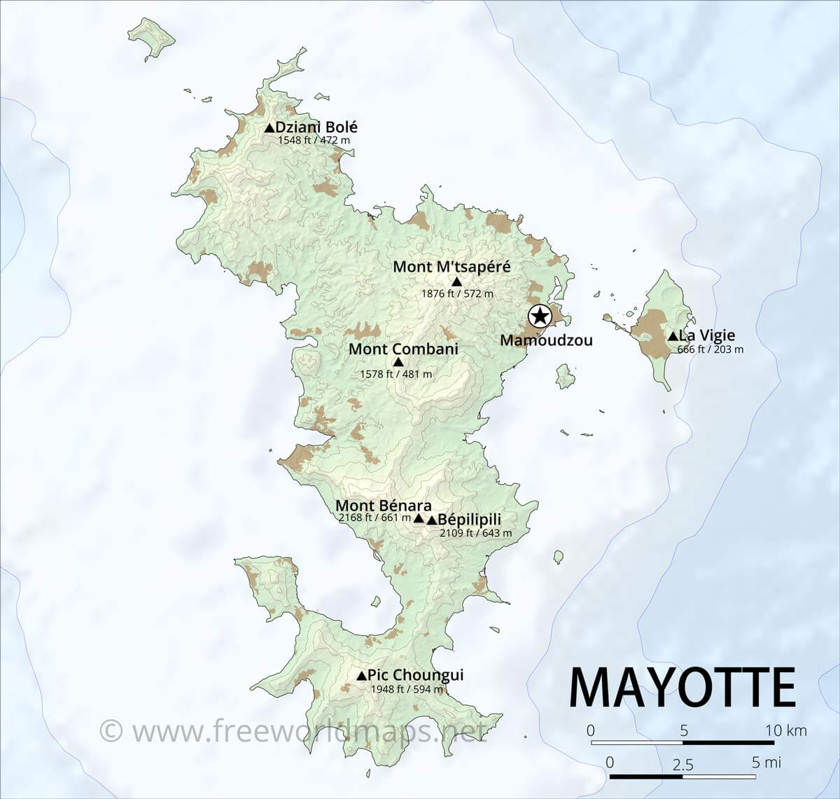 Could not find what you're looking for? Need a special Mayotte map? We can create the map for you!Crop a region, add/remove features, change shape, different projections, adjust colors, even add your locations!