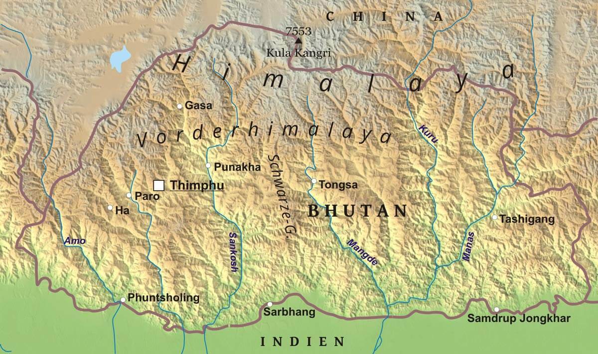 Flüsse: Mangde, Manas, Kuru, Amo, Sankosh