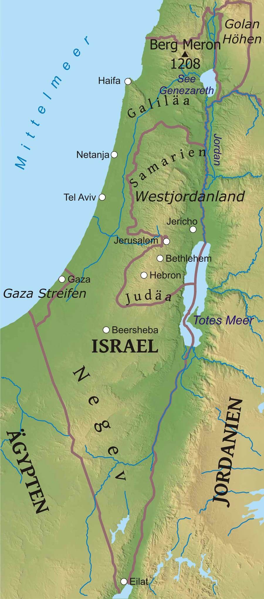 Regionen: Westjordanland, Golan Höhen, Gaza Streifen, Negev, Judäa, Samarien, Galiläa