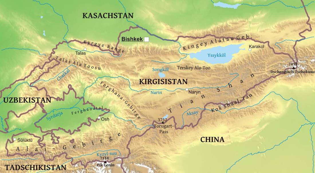 Größte Städte: Naryn, Karakol, Talas, Osh, Sülüktü