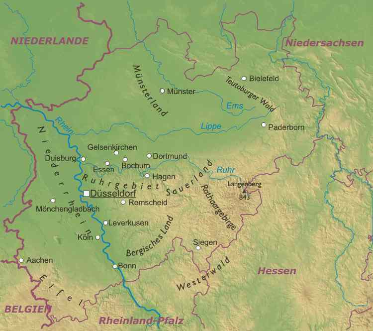 Gebirgen, regionen: Ruhrgebiet, Münsterland, Sauerland, Niederrhein, Eifel, Westerwald, Rothaargebirge, Teutoburger Wald