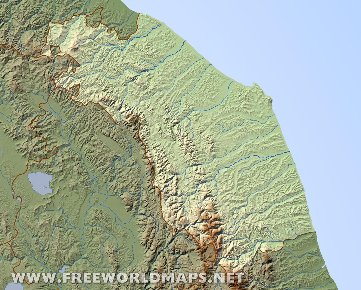 Physical map of Marche