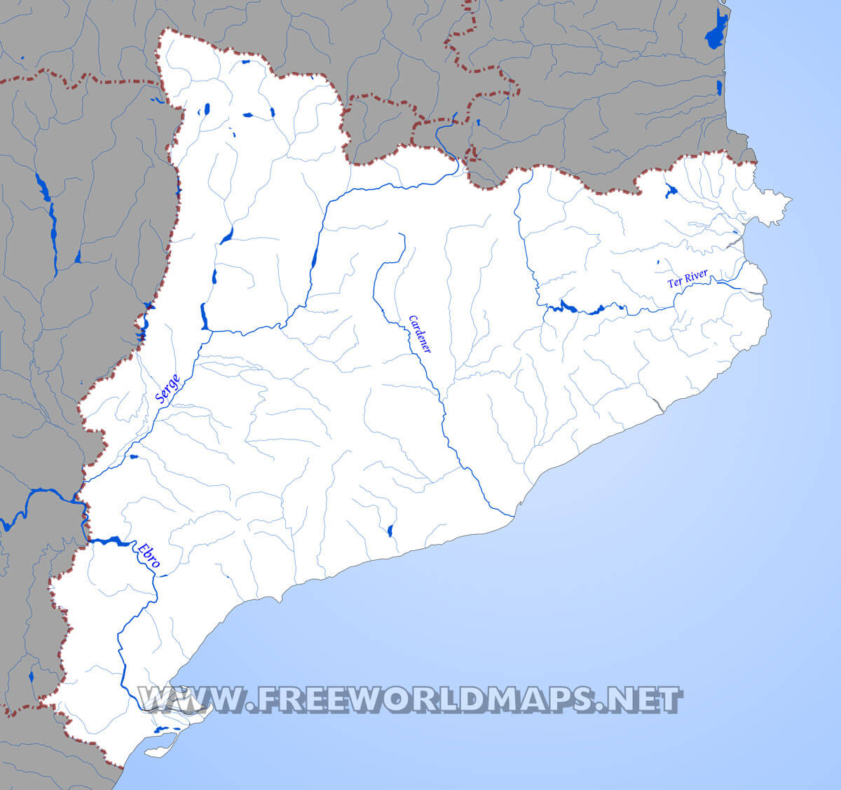 Amposta, Arenys de Mar, Badalona, Balaguer, Barcelona, Berga, Blanes, Calafell, Calella, Cambrils, Cardedeu, Castelldefels, Cornellá, El Prat de Llobregat, El Vendrell, Girona, Granollers, Igualada, La Garriga, La Llagosta, Lleida, Lloret de Mar, Malgrat de Mar, Manlleu, Manresa, Martorell, Mataró, Olot, Palafrugell, Palamós, Premiá de Mar, Reus, Ripoll, Rubí, Sabadell, Salou, Salt, Sant Cugat del Vallès, Sant Feliu de Guíxols, Sant Pere de Ribes, Sitges, Tarragona, Tárrega, Terrassa, Torelló, Tortosa, Valls, Vic, Viladecáns, Vilanova del CamíRivers of Catalonia:
