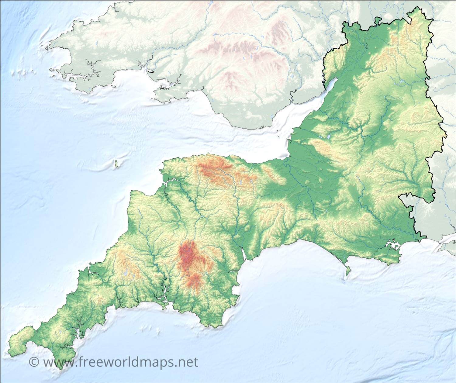 Could not find what you're looking for? Need a customized South West England map? We can create the map for you!Crop a region, add/remove features, change shape, different projections, adjust colors, even add your locations!