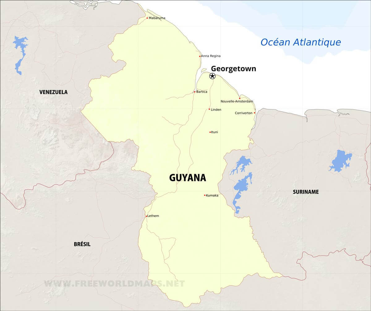 Carte géographique du Guyana